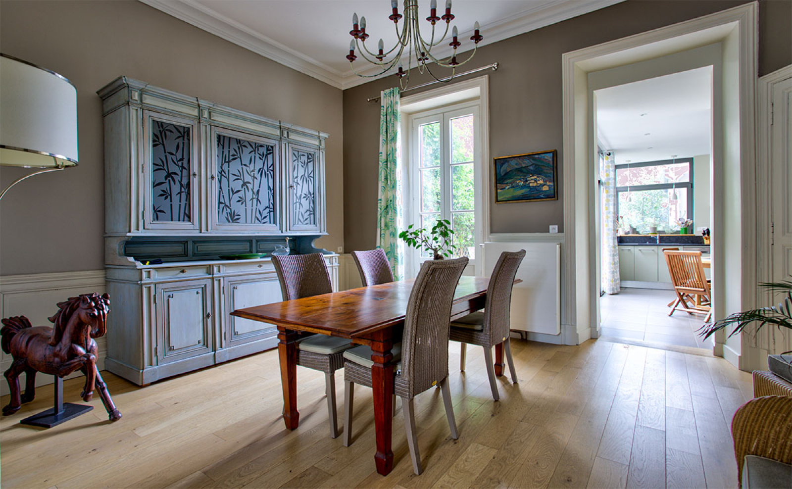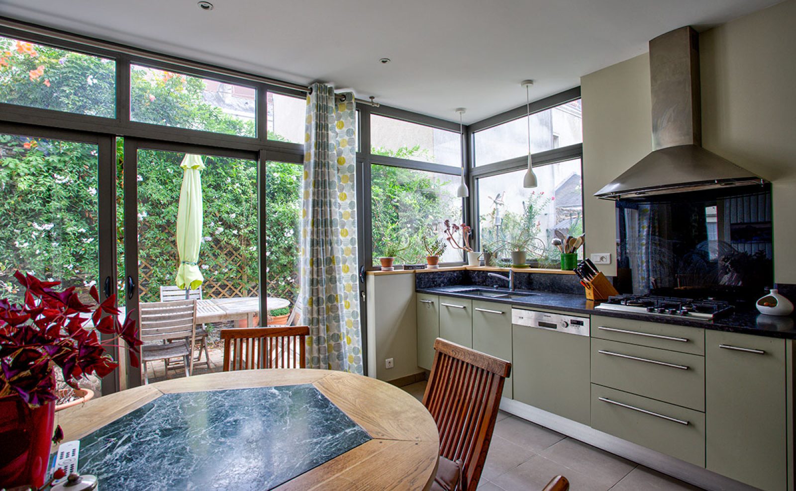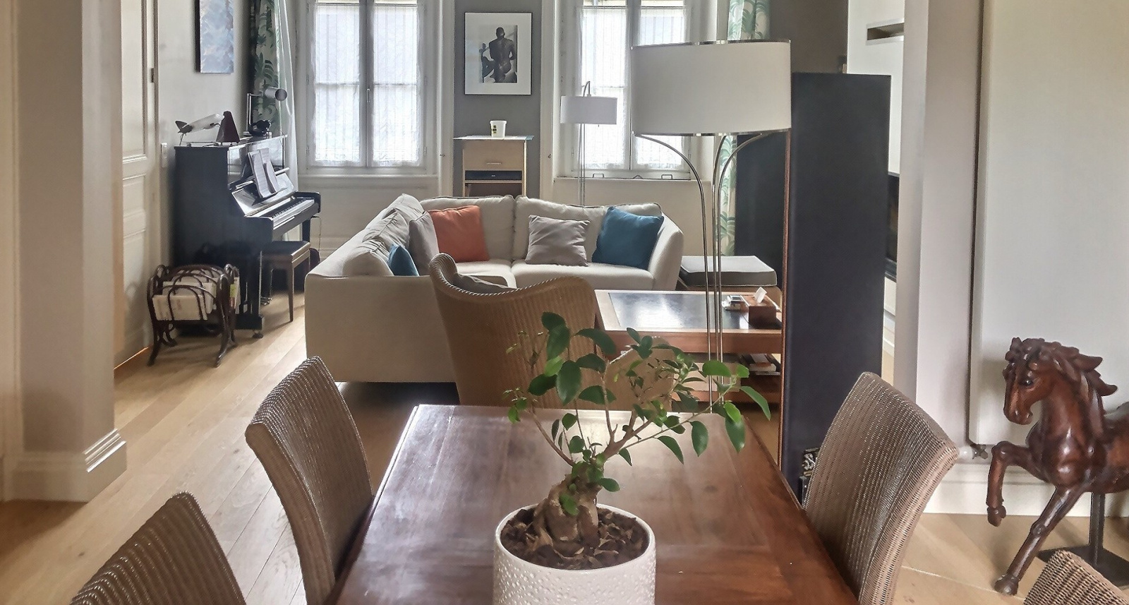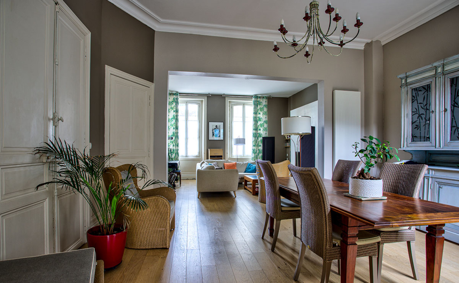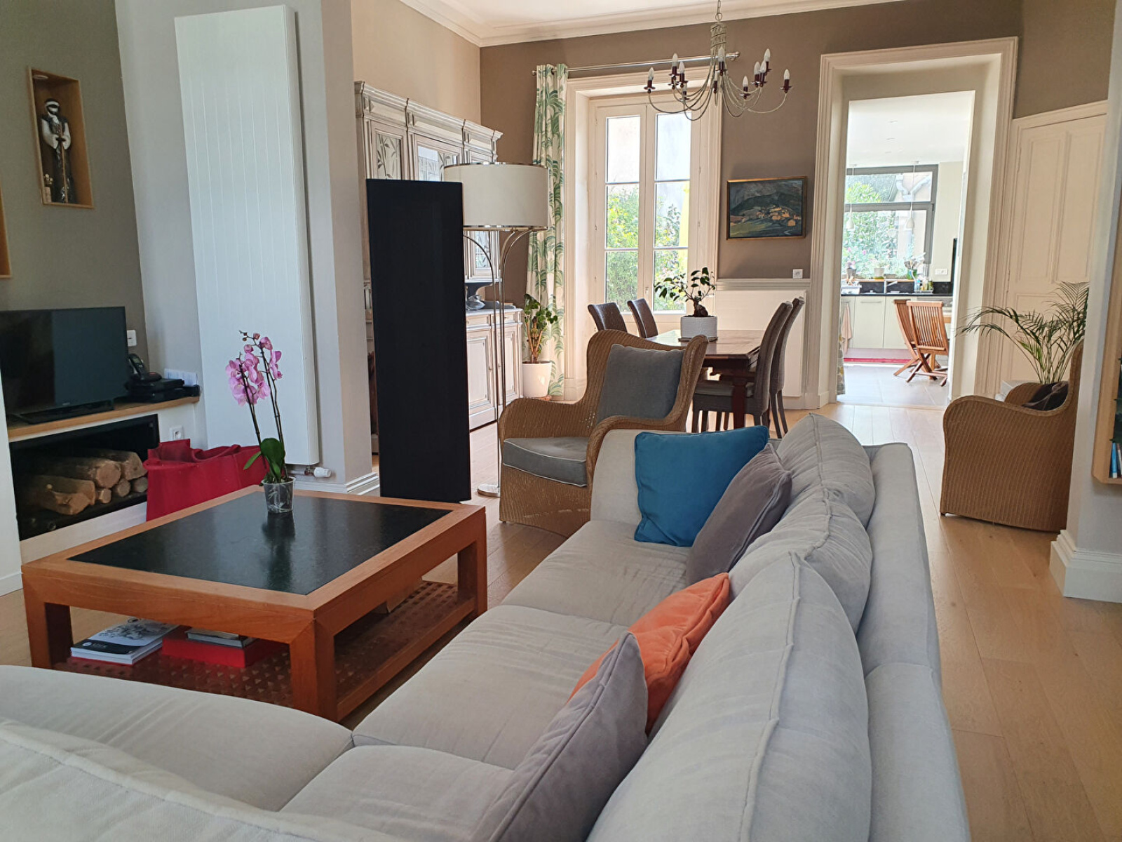 Angers (49100)Située dans un quartier très recherché, grande maison familiale en très bel état comprenant au rdc un salon-séjour de 43m², une grande cuisine aménagée et équipée avec des grandes baies ouvrant sur le jardin, arrière cuisine, un atelier chauffé de 25 m² pouvant être réhabilité en chambre, bureau... Dans les étages se répartissent 5 chambres, sdb, sde, et un agréable appartement type 2 sous les toits. Un garage.